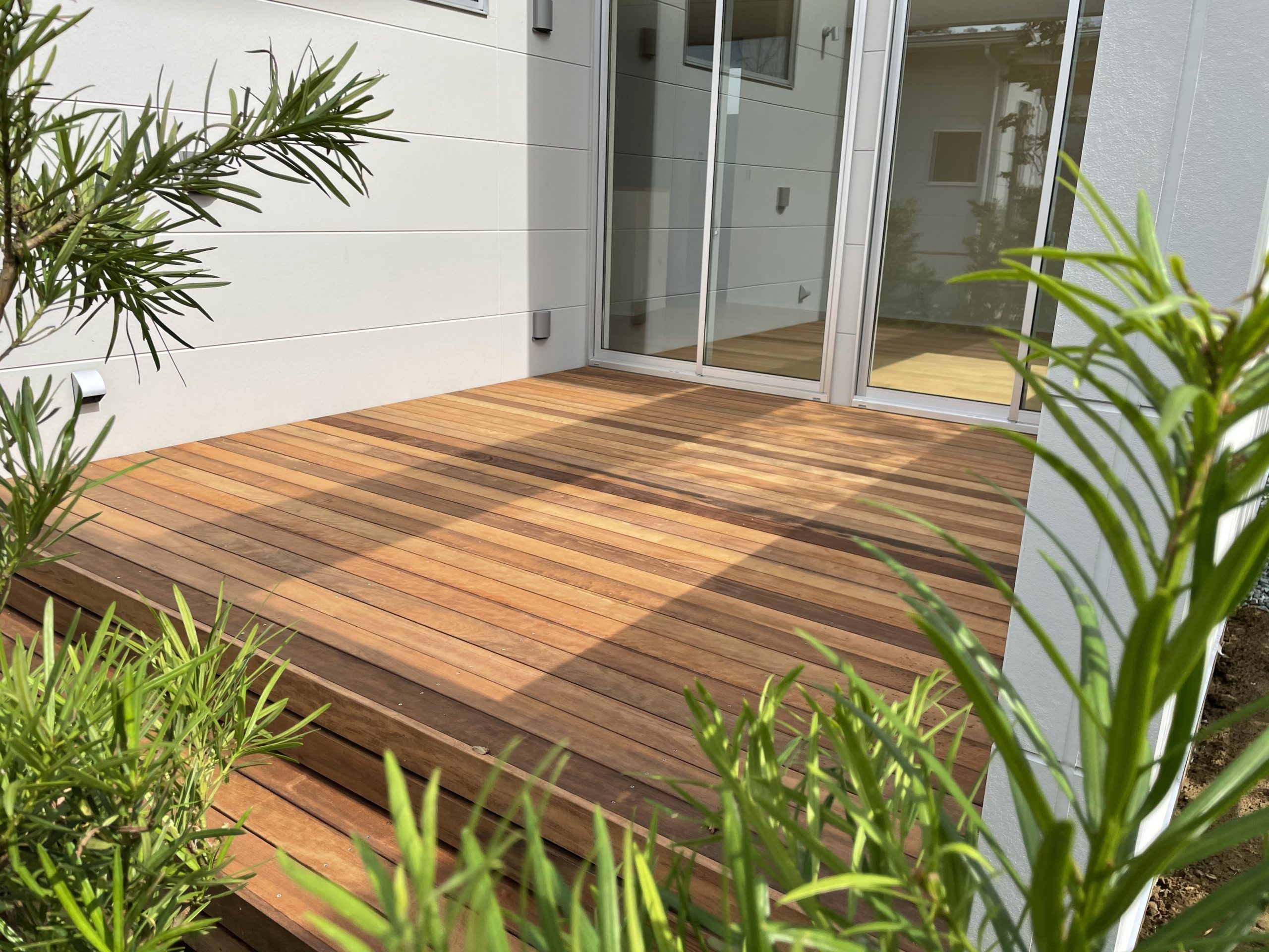人工木・樹脂木のウッドデッキと天然木ウッドデッキの施工方法は、違いがあります。ハードウッド ➡ ・デッキ材はビスのみで作れる・自由設計で作れる・ハードウッドは約20年前後の寿命