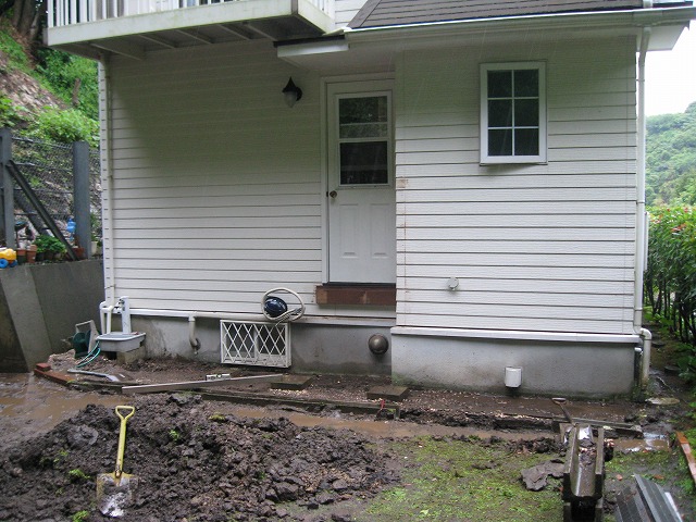 | 傾斜地の場合 | 掘る → 砕石 → モルタル → 基礎石(束石) |