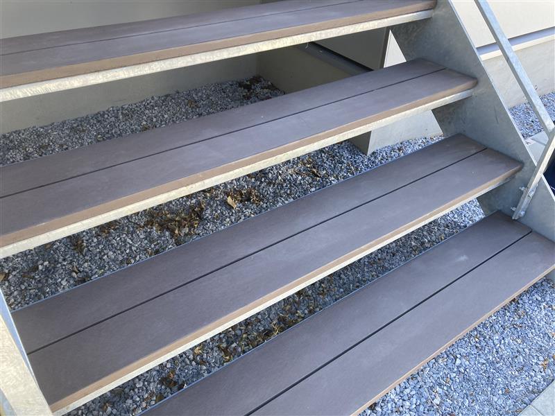 - 樹脂ウッドデッキの根太材料は、天然木のハードウッド・樹脂根太・アルミ・鋼製根太などをご利用ください。